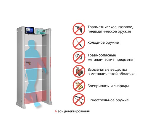 Доступный интерфейс блока управления, высокая степень безопасности, универсальная применимость, высокая чувствительность, широкий диапазон детектирования, нечувствительность к помехам, возможность эксплуатации в течение 24 часов в интеллектуальном режиме с выдачей одновременно звуковых и световых сигналов тревоги, высокое качество, эффективность и отличные технические характеристики – все эти параметры находятся на самом современном мировом уровне. Металлодетекторы БЛОКПОСТ PC Z 600 M с тепловизионной системой Delta 100 безвредны для человеческого организма. Используется магнитное поле низкой интенсивности, безопасное для людей с кардиостимуляторами и слуховыми аппаратами, а также для беременных женщин.
