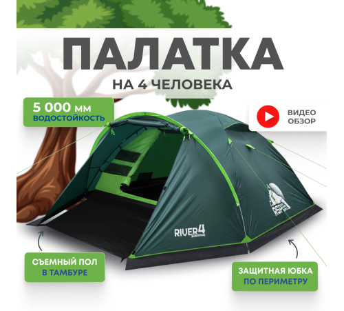 Палатка треккинговая двухслойная RSP River 4 была разработана как для туристических походов средней сложности, так и отдыха с семьей на природе в любое время года. За счет маленького веса и небольших габаритов в сложенном виде пользуется большой популярностью для пеших походов, а также вело и мотопутешествий.
